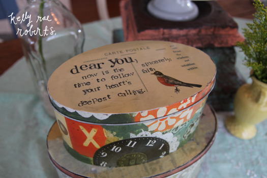 This one is just begging to hold old post cards, heart rocks and found treasures! It reads 'Dear You, now is the time to follow your heart's deepest calling, Sincerely Faith. You can trust the wisdom and intuition within.' Get yours here.