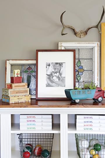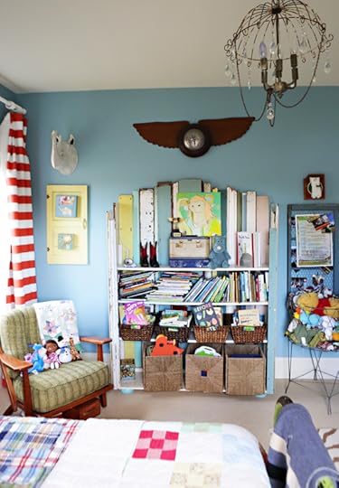 This bookshelf. It has had many, many homes. John made it for me from reclaimed wood back in 2006 when I was starting to paint. I needed a place to store my supplies and it had a special spot in my first couple of studios. It has a lot of sentimental value to us and I love that it now holds True's books (clearly, we are not tidy book storers) and other toys.