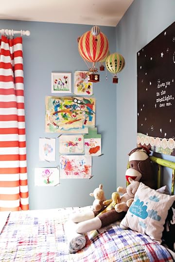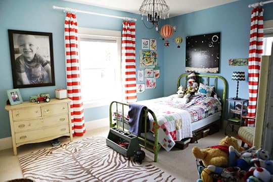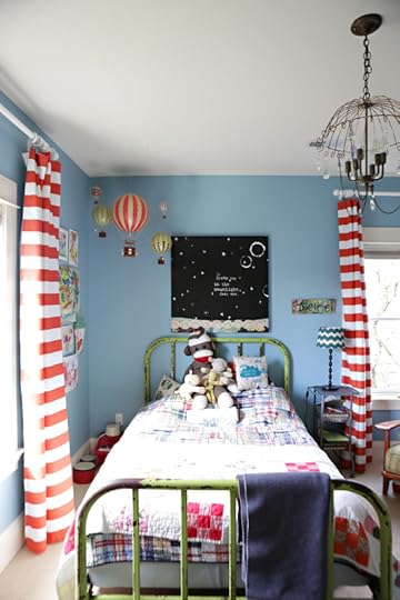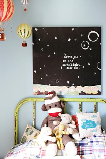 The rusty vintage green bed is the bed that John and I used to sleep on for years. I love love love that it's True's bed now. The art above True's bed is this print of mine that I had blown up into a wall canvas.