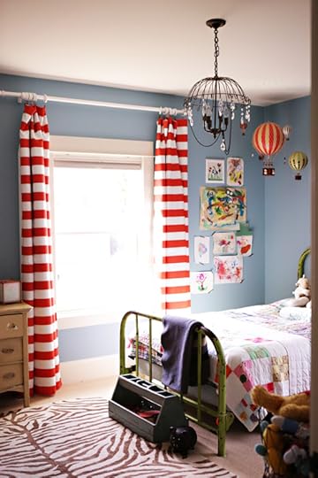The orange striped curtains were made by my mom (thanks, mom!) and the fabric came from Fabric.com.