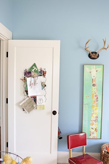 The giraffe piece is by my friend Jennifer Mercede. I'm obsessed with her work. We use this giraffe piece as a growth chart. Love.