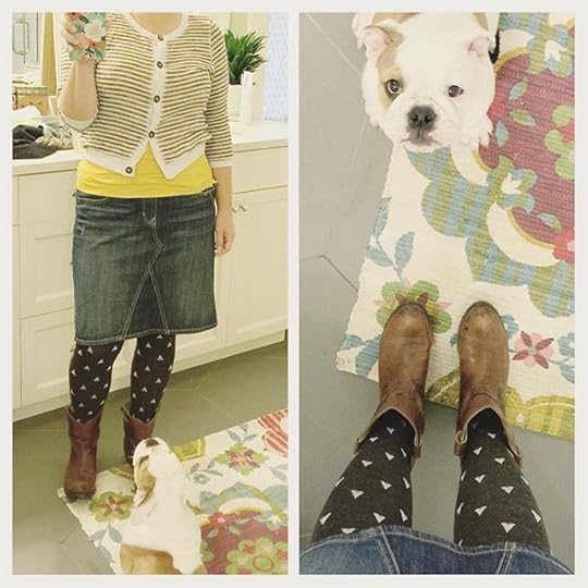 This used to be my uniform. Skirt, tights, boots, cardigan. It's been a loooong time. The Wear Your Joy Project has inspired me do it again. Plus, these tights. Oldies but goodies. Also, this puppy is always at my feet. Love.