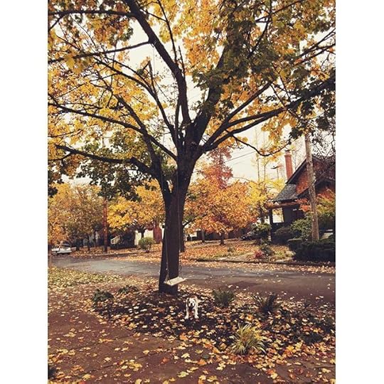 Tomorrow I am heading off on a solo solitude adventure. Today (and all week really) I've been soaking in all of this color, wetness, and scenery of yellow, reds, and oranges. By the time I get back in a week it's likely this will all be bare and brown and muddy. And that's okay too but man do I LOVE Autumn in Portland. Look closely and you'll see Lulu under our tree swing.