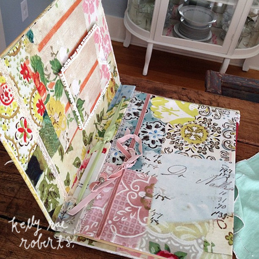 NEW!!!! Inspired by oversized vintage scrapbooks (the ones that hold newspaper clippings and such), we created this GORGEOUS, crazy beautiful oversized scrapbook/memory book. The front cover is made of fabric and features lace and rhinestone and a place to hold a 4x6 photo.