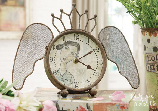 Winged clocks? Yes, please! This clock is one of my all time favorite products we've ever done. It's unique, has a vintage vibe, and makes the old saying "time flies" feel/look beautiful. Gorgeous, gorgeous.