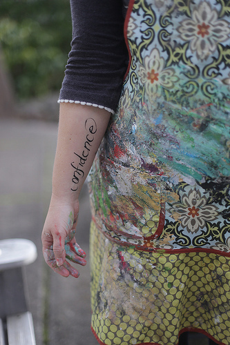 (Photo by Andrea Scher)Later in the day we painted words on our bodies. Have you ever done this? I've done lots of variations of this exercise at other gatherings, and it's a powerful, soul healing declaration. This time around, I choose, of course, to invite confidence. It seemed to insist I acknowledge it with a celebratory YES! And so I did. It's not lost on me that taking the leap into painting and the creative life all of those years ago is what gifted me a beautiful, fearless confidence. And now, all of these years later, paint is being used again to welcome confidence back into my skin, into my life, into my heart. What a gorgeous full circle moment for me.