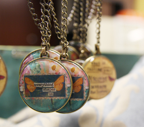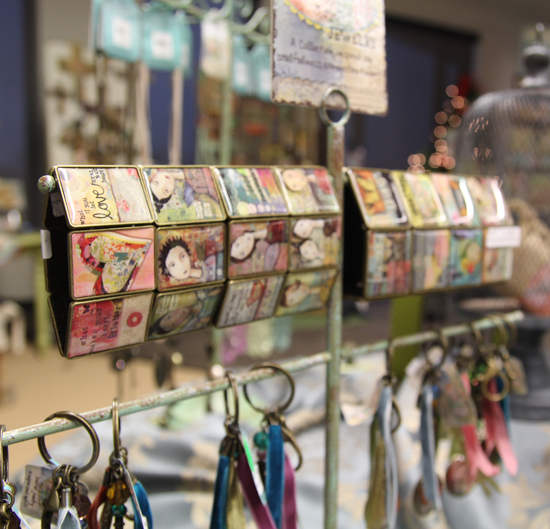 The signature collection includes many pieces (necklaces, bracelets, earrings, and keychains, too) that feature my artwork as the focal point. The most affordable and largest of all the jewelry collections, these pieces shine, shine, shine. Love them all. Can't wait to show more of them to you, but wanted to give a sneak peek first.