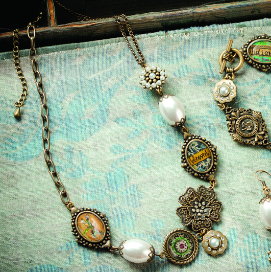 Last but not least, we're introducing a small, vintage inspired collection which includes necklaces, earrings, and bracelets. All gorgeous, and so well made. My heart can hardly believe it. Love.