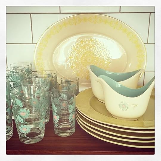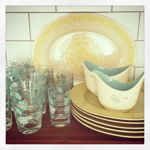 Working from home today. It goes like this: work on porch for a bit, putter around, make tea, work from dining room for a bit, putter some more, get on the phone for a bit, work some more, putter. I love puttering around, ya'll. And I love love love having the house to myself for a few hours (rare). Today I stopped and admired our growing vintage collection of this glassware. I found the gravy bowl that matches our glasses at a vintage shop the other day and gasped at the find. Friday, September 4