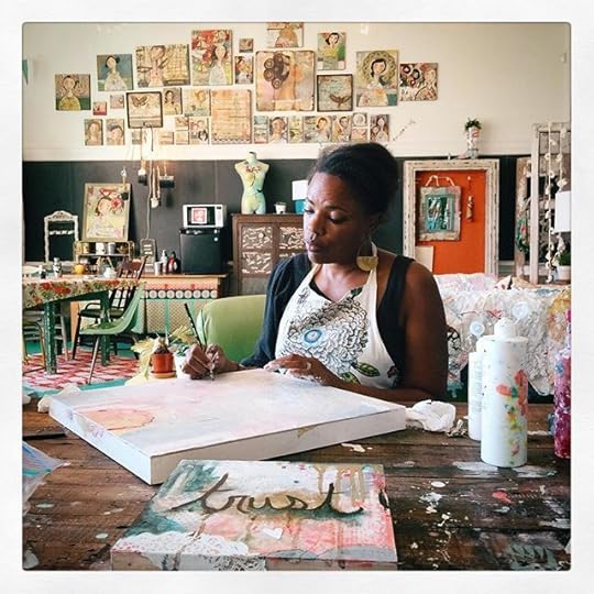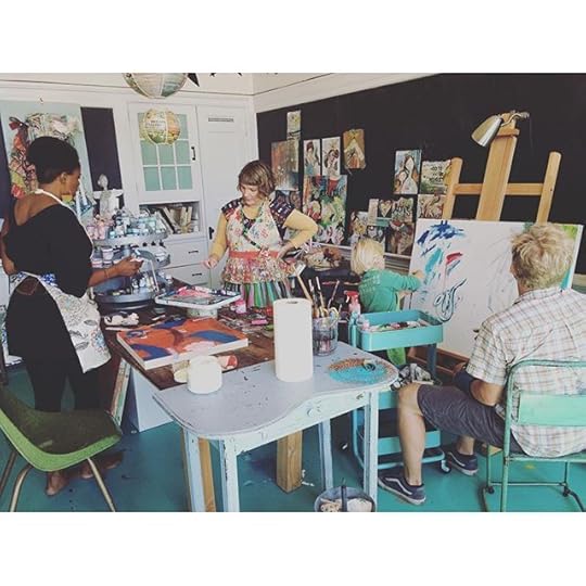 More goodness from earlier today. True and John worked on a large canvas while Myriam and I worked on our own. Taylor Swift was on while we got our paint on. Super awesome couple of days over here. Lots of great FOOD, convo, friends, painting. I'm happy tired. Xxo