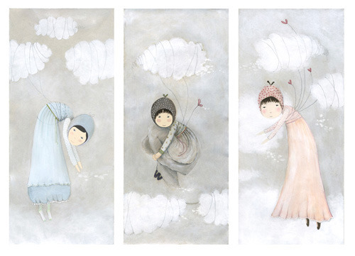 Katherine is the short, curly haired, New Zealand artist behind Sleep and her Sisters. She works part time from her kitchen table in the sunny Hawke's Bay where she likes watching clouds, buying apple flavoured lollies and often thinks about the day she had lunch in Paris.