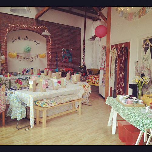 Photo credit: Andrea ScherWe took our time, we talked about what we wanted to invite into the experience while setting the tables, while hanging up string lights, while draping aprons on the chairs, while hanging up dresses on the walls, while writing hope notes for each person who would be attending.