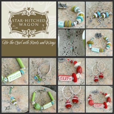 Hello!! I'm Stacey Curry of Star Hitched Wagon™ artisan goods for the Girl with Roots and Wings! I'm passionate about creating - can't imagine life without it. My parents inspired passion of creativity at a young age. Mom enjoyed baking, crocheting and ceramics and was wonderful about including my sisters and I. Dad let us create in the garage with his tools and scraps of wood. There wasn't a right or wrong way - they just let us do what we were inspired to do. So I feel I have always been creatively awake. I'm blessed. Lucky to be born and raised in rural Montana - the beauty of the plains and mountains fueled my creativity - I began designing and selling jewelry to family and friends at sixteen. I continued to cultivate my creativity and developed my own line featuring one-of-a-kind jewelry and handmade bath and body products. In 2003 I introduced this line to the world and a star was born. Enjoy your visit to the shop and take 20% off your order. Code: kellyrae Expires 12/31/2011***************