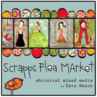 Kate Mason is the art maker behind "Scrapps Flea Market". Once a widely published scrapbook/ paper artist & co-author of two scrapbooking books, Kate is now pursuing her artistic dream as a mixed media collage illustrator.