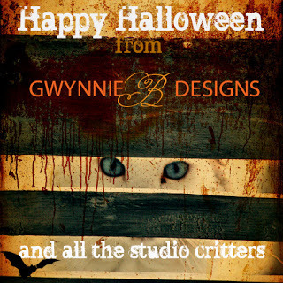 It's almost Halloween and here at the Gwynnie B Designs studio the critters are getting ready for some spooky fun! Lucy will be a dancer in her pink tutu with rhinestones, Louie will just be grouchy (he's old so that's the best he could do), Bleu Kitty will be invisible by shedding white fur on all my black clothes, and Fatso Skinny will collect stickers in his fluffy tail to bring inside for a scary mess.