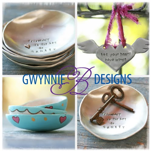 Happy Summer Solstice! And with the new season comes new pretties at the Gwynnie B Studio. Handcrafted pewter gifts and whimsical plaster bowls have been making their debut with flying colors!! Each pewter piece was sculpted by me and then cast in lead-free pewter with a gorgeous luster finish. The bowls are too cute and will happily hold all of your fabulous treasures and groovy little trinkets! Please stop by my shop to check things out and please be sure to also stop by my Beautiful heART blog for studio musings and all things pretty.********************************************