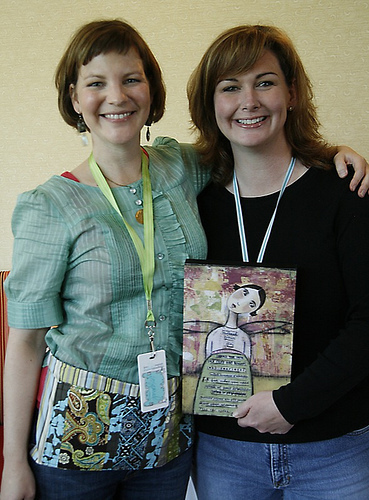 (that's us at the National Sales Meeting in 2009. See/read more here.)During this interview with Anne, you'll hear how the KRR line came to be (and what a risk it was for both of us), how Demdaco finds their artists (you'll be surprised), how they try and honor the indie/handmade movement, how they've come to embrace the mixed media art community (with successful partnerships with many mixed media artists), how the product development process works, what she thinks is the key to creating successful products, and so much more, including a surprise guest!
