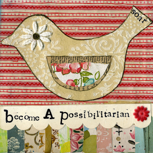 fast forward a few months. i go to a barnhouse flea looking for a farm table and come home incredibly inspired again on the home decor front. i lose sleep a few nites because i'm so inspired and SURE that this is meant to be - that i'm supposed to somehow merge my love of home decor with my art. i write about the entire experience in a blog post where i write, "i just knew in the pit of my stomach that my mixed media world and my decorating world were about to collide. and it got me so excited." at the time, i had no idea how to do it, i just knew it felt good to dream about it.