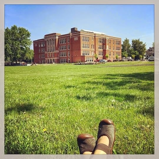 The view from earlier today when I went outside my studio to get some air, and to get some perspective. Much needed and I just really love that I work inside this old renovated high school with a big park attached (old football field). And the sun. Grateful it's been out here in Portland lately. Ahhhhhh.