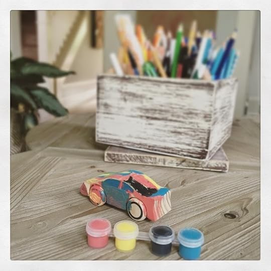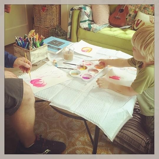 We use Bella's old doggie piddle pads (used a lot toward the end of her life) for painting pads in the house. PERFECT for spilled water and paints. I have no idea why, but I feel called to share this tip with you! And also, it makes me love that Bella is still with us in this hilarious way.