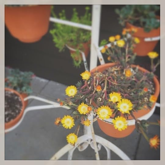 Found the succulents blooming this morning. I love love love it when that happens. Also, I had an elaborate dream last night about a peacock who was in our house. It jumped onto my head! I wonder what it means?