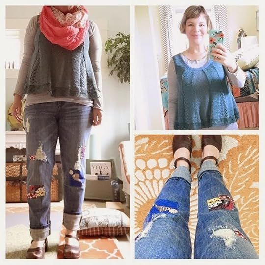 I was voted most likely to wear stripes with plaids in high school, which makes me chuckle that I'm now leading The Wear Your Joy Project ecourse more than 20 years later. The universe has a major sense of humor, I think. Today is the first day of our 30 day practice and I'm thrilled. Today I'm wearing patched up jeans and friends, they make me feel like ME!
