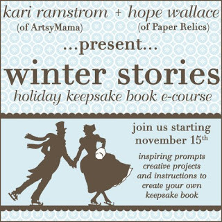 Hope Wallace of Paper Relics and Kari Ramstrom of ArtsyMama are teaming together to host a fun-filled holiday class about discovering and documenting your own winter stories. We will help you to fully embrace the magic of the season with inspiring prompts, creative projects and instructions to create your own keepsake book. This class is about taking this particular time of year and capturing its essence. Collecting images, artifacts and memories of our winter stories for 2010. Seeking beauty and meaning in everything and embracing it, then documenting it. Each weekday beginning November 29th, we will provide a prompt or creative project and it will continue for four weeks. There will be a journaling prompt to fill your book up with memories, traditions and wishes, a creative project, and a post from one of us exploring a topic we love. Click here for lots more info and to sign up.
