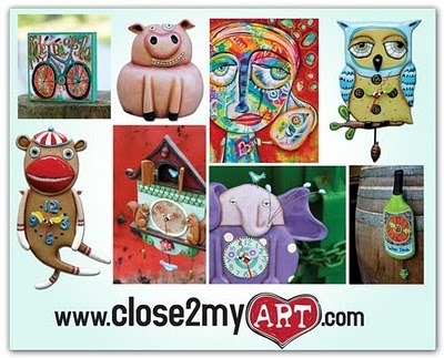 Fun and funky is what we do! We invite you to come and explore Allen Designs's new website CLOSE2MYART.com. We are a small studio based right outside of Portland, OR, where 5 gals and a guy work together to bring you these whimsical devices of time, funky art and other unique and affordable gift products! Wanting to give an original gift that you can't find in your "big box" stores? Then check us out! All Kelly Rae Readers receive a 10% discount with any purchase, along with a free gift! (Discount Code: KRAE10)Also, for added incentive, profits of the website go to the Close2myArt Cycling Team, a non-profit training program that Michelle and her husband Gary started, teaching kids the basics of bike handling and racing in a fun and healthy environment. To learn more about our studio and the artist, Michelle Allen, check out her blog here!