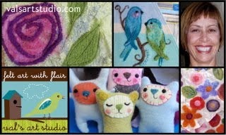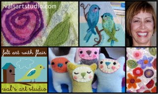 Hi! I'm the Val behind Val's Art Studio. My passion is Needle Felting, my "canvas" is felted recycled wool, and my main inspiration are the birds outside my window. I needle felt Everything, but not only with birds! Pirates, Monsters, Kitties and Pups, Lovables, and more have all found their way into my creations; women's and children's clothing, hand dyed silk scarves, glorious pillows for your home, custom portraits of your favorite pet, even the paintings I paint, and the occasional jeweled finery. In my world, nothing is safe from felting, needle felting and embroidery! (Ok, well, except for my husband, 2 sons and Lola, the Portuguese Water Dog. Though supportive, they really just don't get it...) I live in sunny Southern California, but I'm right by the beach, so I wear and work wool and cashmere all year round. You can find out more about what I do, and see some of my latest creations by visiting my blog, my website, or my etsy shop.