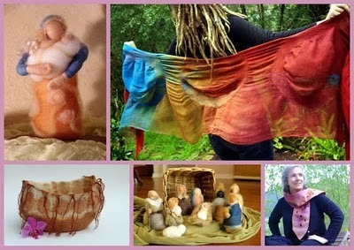 Wool and silk garments and artworks in warm natural hues and vibrant colours. Beautiful wrap-around felted silk scarves and Waldorf inspired toys including nativity scenes made from plant-dyed wool: you're sure to find something special!