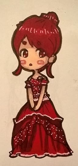 Her hair is down. It's tangled itself from her recent lack of self care. The red strands fall messily down her nightgown covered back. This gown, of sorts, is far less decorative than the ones she wears in public. Instead of vibrant, eye catching colors and designs, it's simple. Plain. It's not meant to be seen.