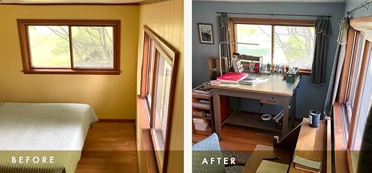 My new studio is the back bedroom upstairs in our new (old) house. The house was built in the 1800’s but the room is much newer, feels like it’s from the 70s? When we moved in, the bedroom was yellow and brown. You can click thru the gallery below - each image has captions if you want more info!