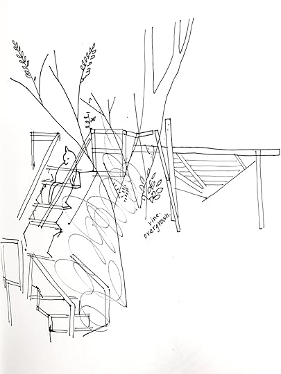 My friend Pat then invited me to take photos and draw on her farm. It was a gold mine for visual references, and her very sweet dog and cat followed me all over the property. There, I drew farm equipment, her horses, and an awesome tree fort (which made its way into the book as well!)
