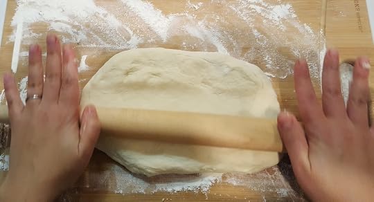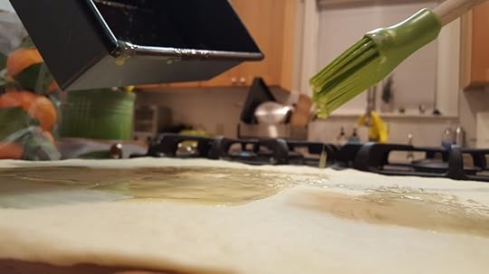I find myself fluctuating between apathy and anger as I try to follow Batali’s recipe, which is sparse on details. The base of the rolls is pizza dough – Batali notes that you can either buy it, or use his recipe to make your own.
