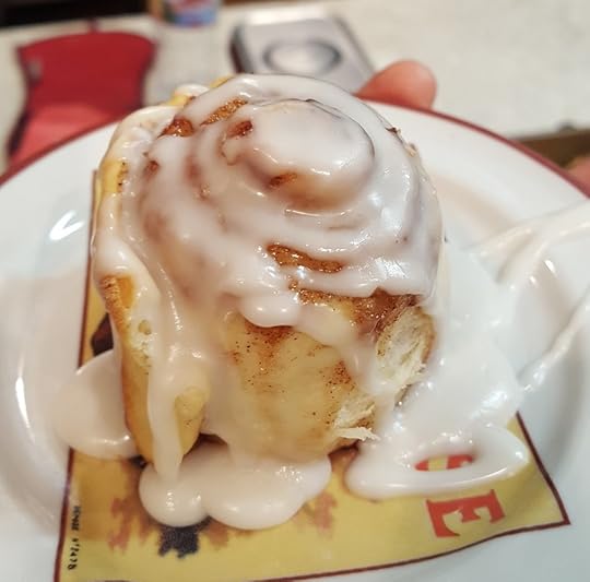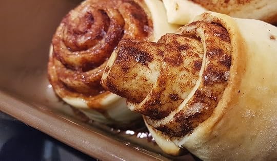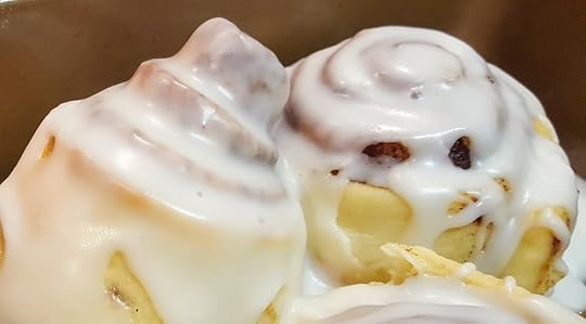 “Oh, god,” he says. “These are those cinnamon rolls, aren’t they?”