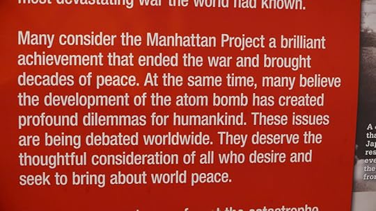 The Los Alamos National Laboratory now functions as a museum (The Bradbury Science Museum), one that largely skirts around the implications of the dropping the bomb. In their attempts to offend no one, the placards are shockingly dissatisfying.