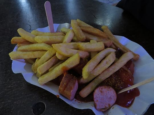 But despite the name, despite the appearance, despite its raw components … currywurst is not bad. Indeed, given the right circumstances, currywurst might be great. When you are drunk and hungry, it is there. When you are tired, and jetlagged, and you’ve just left Italy after perhaps committing rental car fraud, currywurst is perfect.