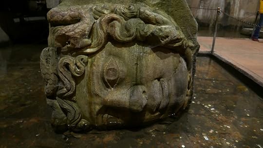 Here two giant Medusa heads sit at the bottom of columns – one is turned on its side, while the other is upside down.