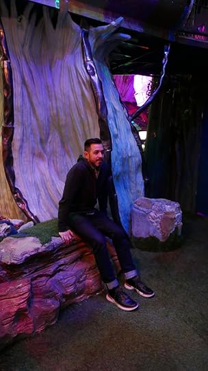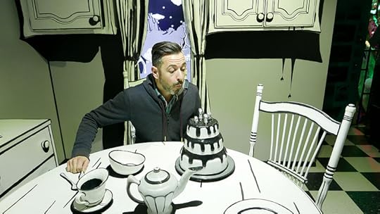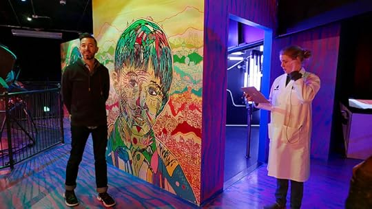 Rand at Meow Wolf. The note he’s holding says “oops.”