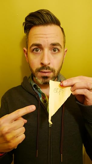 He stares at me blankly for a beat. He pulls up my Goodreads reviews and points at it.
