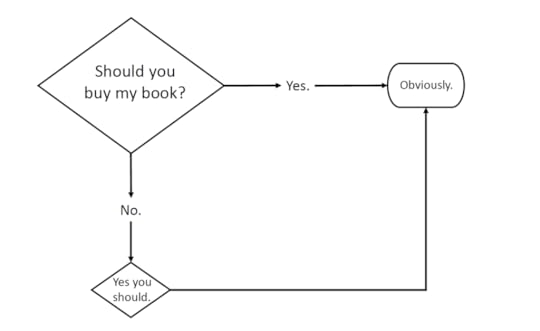 It is available on Amazon, Barnes & Noble, and local booksellers everywhere. It is $4 for the e-version, which is crazy cheap. The hardcover is less than $20. Buy 10 of them and give them to your friends/enemies/other people you’ve sent unsolicited emails to. I have attached an infographic about my book, which isn’t so much an infographic as it is a box in which I’ve written the words “BUY MY BOOK.” I have also attached my official press release and a flowchart that I made while ostensibly sober.
