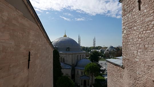 View of mosques from the upper floor of the Hagia Sophia in Istanbul