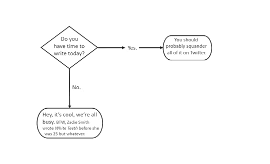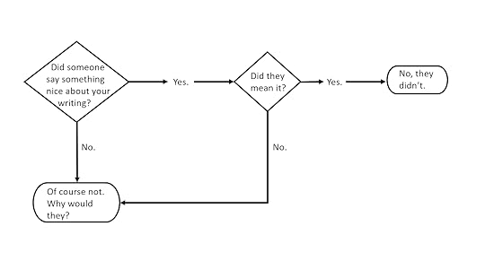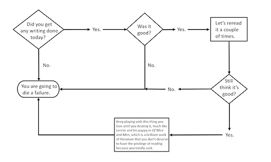 So rather than create any cogent advice, I decided to chart out the path of my neuroses as it comes to my work. I made a few flowcharts and diagrams. If you are a writer, you’ll probably relate. And for that, I am entirely sorry.
