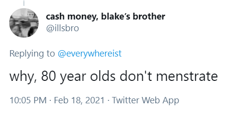 Oh, no, the guys on Twitter who are frightened by menstruation and find grammar as baffling as they do the clitoris doesn’t want to fuck me, whatever will I do.