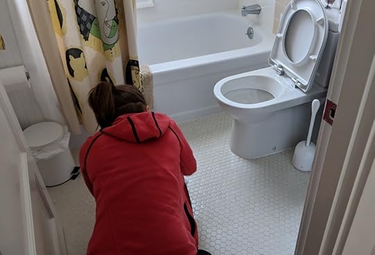 Dear friends, I work hard to make that bathroom pristine, not just for me and Rand, but for you. Every time I know you are coming over, I bleach that fucker. I scrub the floors. Like, I literally get down on my hands and knees and scrub the floors. I do this gladly, yes. But make no mistake: it takes and effort.