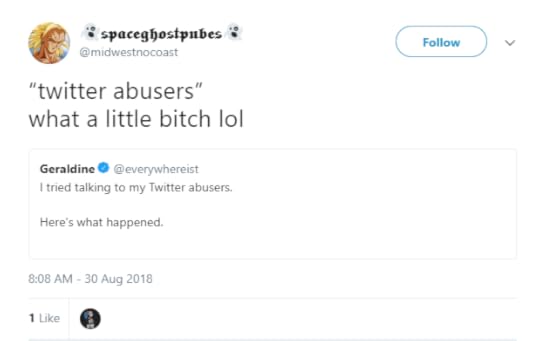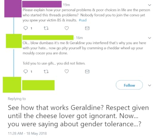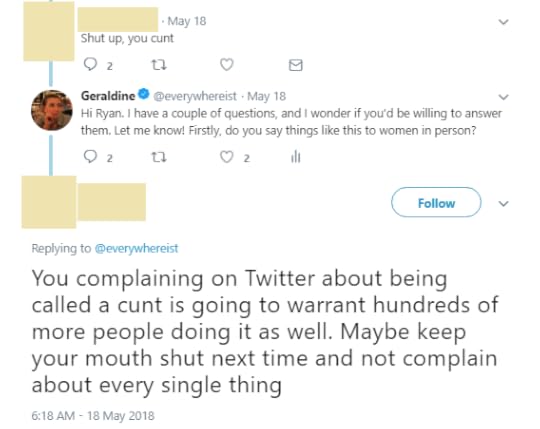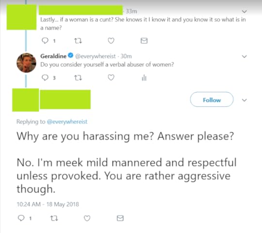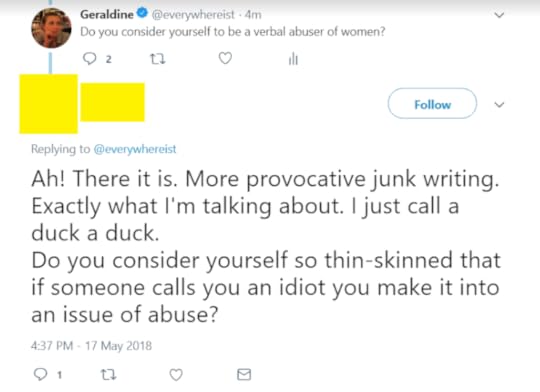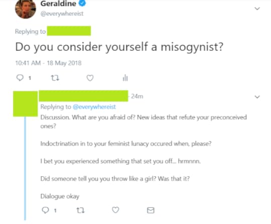 Because their attempts to push me out of the space had failed, they were trying to gain control in another way. And when that, too, failed, they either turned to more insults, dismissed me, or blocked me.