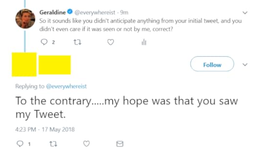 This individual noted that they had no ideal outcome in mind for their tweet – they just wanted to be sure I saw it.