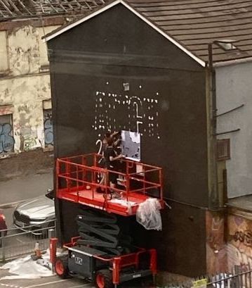 Sad times indeed.#JoyDivision 's #IanCurtis mural in #Manchester was replaced by a rapper (and McDonald's brand ambassador... What would @officialmoz say?) album advertisement.I was there just a few weeks ago.