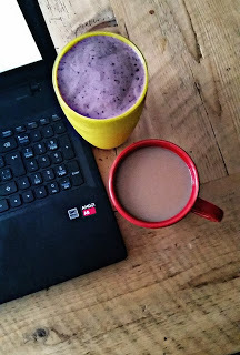 My house is so quiet this morning. It is heavenly!This is how I start every morning. It's my hot and cold start to the day. A cold refreshing smoothie for breakfast, filled with tons of brain foods and a hot tea to warm me up after!