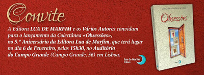 É já no dia 06 de Fevereiro que terei mais um texto meu publicado numa nova colectânea da Editora Lua de Marfim. A minha "Obsessão" Apareçam.